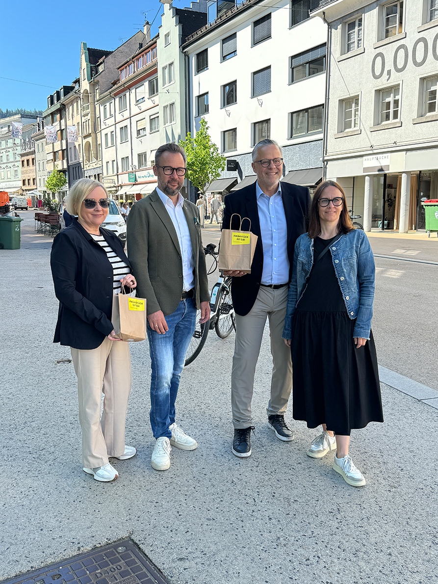 Symbolischer Auftakt war in der Innenstadt, wo Roland Frühstück und seine Mitstreiterinnen und Mitstreiter heute in der Fußgängerzone und beim Markt am Kornmarktplatz Jausensäckle verteilt haben. Sie waren mit einem Milchshake, einer gesunden Müslimischung und einem knackigen Apfel gefüllt. Erster großer Höhepunkt dieses neuen Dialogformats wird am 7. Juli ein Frühstück für alle interessierten Bregenzerinnen und Bregenzer am Bodenseeufer sein.